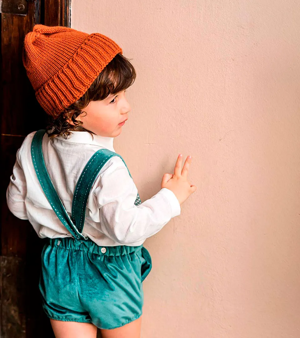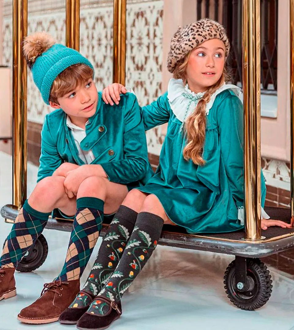 En la Colección destaca su alegre color verde confeccionada en un suave terciopelo con detalles muy artesanos.